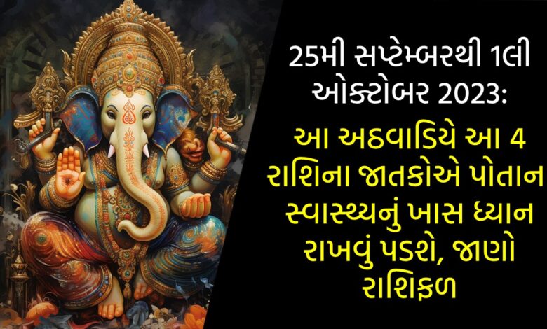 25મી સપ્ટેમ્બરથી 1લી ઓક્ટોબર 2023: આ અઠવાડિયે આ 4 રાશિના જાતકોએ પોતાના સ્વાસ્થ્યનું ખાસ ધ્યાન રાખવું પડશે, જાણો રાશિફળ