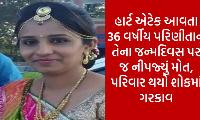 હાર્ટ એટેક આવતા 36 વર્ષીય પરિણીતા નું તેના જન્મદિવસ પર જ નીપજ્યું મોત, પરિવાર થયો શોકમાં ગરકાવ