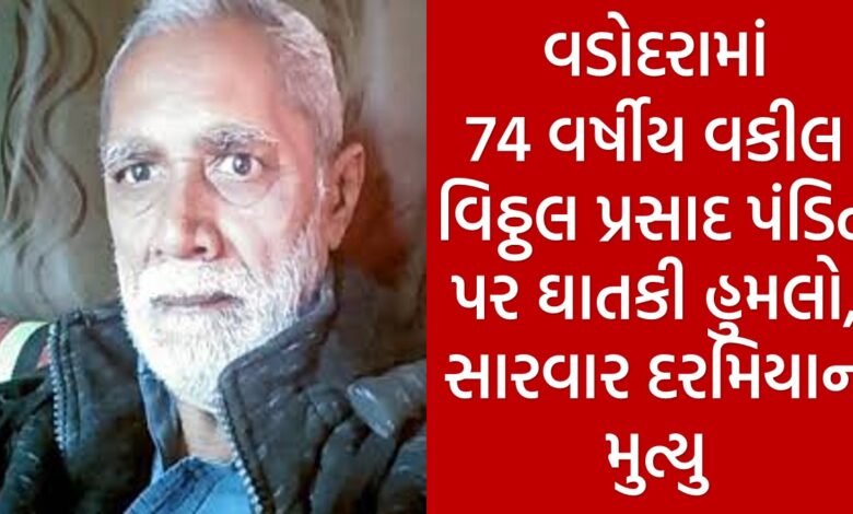 રાજ્યમાં સતત ક્રાઈમની ઘટનાઓમાં વધારો થઈ રહ્યો છે. એવામાં આજે આવી જ એક બાબત વડોદરાથી સામે આવી છે. વડોદરામાં 74 વર્ષીય વકીલ વિઠ્ઠલ પ્રસાદ પંડિતની હત્યા કરવામાં આવી હોવાનો મામલો સામે આવ્યો છે. શહેર પાસે આવેલા સિંધરોટ અમરાપુરા મીની રીવર બ્રિજ નજીક વકીલ પર હુમલો કરવામાં આવ્યો હતો. જેમાં જાણકારી મળી છે કે, પોતાના જ અસીલ એટલે નરેશ રાવલ દ્વારા હત્યા કરવામાં આવી હોવાનું સામે આવ્યું છે. આ વ્યક્તિ દ્વારા વકીલ વિઠ્ઠલ પ્રસાદ પર જીવલેણ હુમલો કરી ઈજા ગ્રસ્ત કરવામાં આવ્યા હતા. ત્યાર બાદ તેમને સારવાર માટે સયાજી હોસ્પિટલમાં ખસેડાયા અને ત્યાં તેમનું સારવાર દરમિયાન મૃત્યુ નીપજ્યું હોવાનું સામે આવ્યું છે.