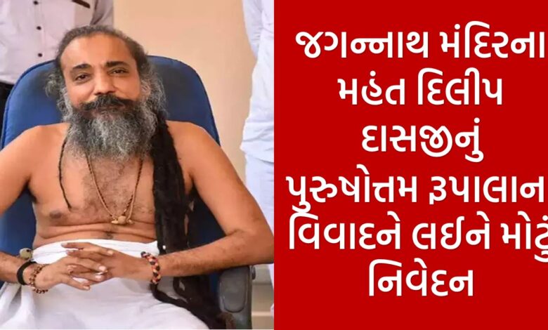 નોંધનીય છે કે, રાજકોટ લોકસભા બેઠકના ભાજપના ઉમેદવાર પુરુષોત્તમ રૂપાલા દ્વારા રાજપૂત સમાજને લઈને આપવામાં આવેલ વિવાદિત નિવેદન લઈને તેમનો રાજપૂત સમાજ દ્વારા સતત વિરોધ કરવામાં આવી રહ્યો છે. જ્યારે આ મામલામાં પુરુષોત્તમ રૂપાલા દ્વારા અત્યાર સુધી ત્રણ વખત માફી માંગવામાં આવી છે. એવામાં દરેક ઈચ્છી રહ્યા છે કે, આ વિવાદનો જલ્દી અંતે આવી જાય. એવામાં જગન્નાથ મંદિરના મહંત દિલીપદાસજી મહારાજ દ્વારા આ મામલામાં મોટું નિવેદન આપવામાં આવ્યું છે.