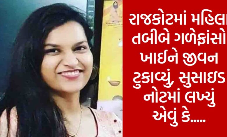 રાજકોટમાં મહિલા તબીબે ગળેફાંસો ખાઈને જીવન ટુકાવ્યું, સુસાઇડ નોટમાં લખ્યું એવું કે…..