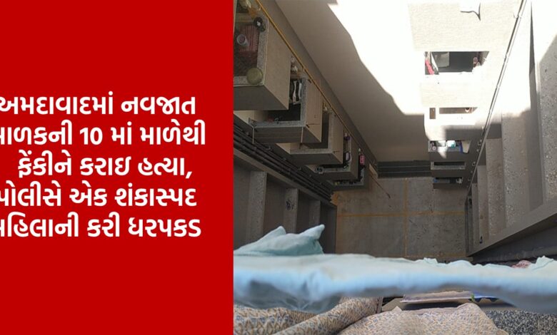 અમદાવાદના ચાંદખેડામાં એક કરૂણ ઘટના ઘટી હતી. જેમાં નવજાત બાળકની નવમાં માળથી ફેંકી હત્યા કરવામાં આવી હતી. આ કેસમાં પોલીસને મોટી સફળતા પ્રાપ્ત થઈ છે. પોલીસ દ્વારા આ મામલામાં એક મહિલાની અટકાયત કરવામાં આવી છે. આ મહિલા દ્વારા બાળકને જન્મ આપીને બાથરૂમમાંથી નીચે ફેંકી દેવામાં આવ્યું હોવાનું સામે આવ્યું છે