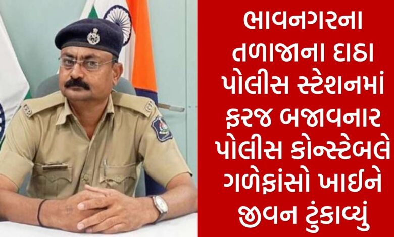 ભાવનગરના તળાજાના દાઠા પોલીસ સ્ટેશનમાં ફરજ બજાવનાર પોલીસ કોન્સ્ટેબલે ગળેફાંસો ખાઈને જીવન ટુંકાવ્યું