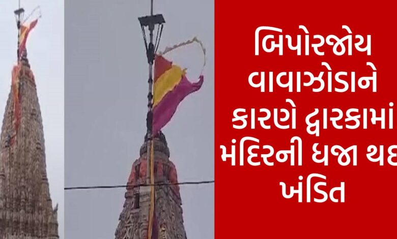 બિપોરજોય વાવાઝોડાને કારણે દ્વારકામાં મંદિરની ધજા થઈ ખંડિત