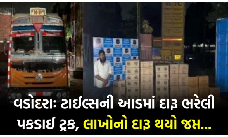 વડોદરામાં ટાઇલ બોક્સની ગાડીના બાને દારૂનો મોટો જથ્થો લઇ જતી ટ્રક પકડાઈ હતી. પોલીસે ડ્રાઈવરની પૂછપરછ કરી સપ્લાયરને મોટો દારૂનો વોન્ટેડ જાહેર કર્યો હતો. દારૂનો વધારે જથ્થો વડોદરા લાવવામાં આવી રહ્યો હોવાની તેમને પરફેક્ટ બાતમી મળતાં ક્રાઈમ બ્રાન્ચની ટીમે ગોલ્ડન ચોકડી પાસે એક ટ્રકને રોકી કાઢ્યો હતો. જ્યારે પોલીસે ટ્રકના ડ્રાઈવરની પૂછપરછ કરી તો તેણે જણાવ્યું કે અંદર ટાઈલ્સના બોક્સ હતા અને અલગ અલગ બોક્સ પણ બતાવ્યા હતા.