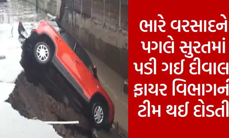 ભારે વરસાદને પગલે સુરતમાં પડી ગઈ દીવાલ, ફાયર વિભાગની ટીમ થઈ દોડતી