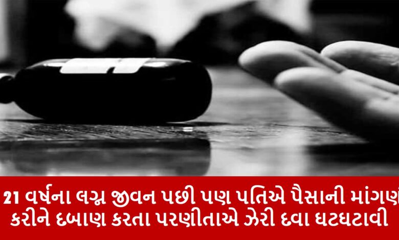 21 વર્ષના લગ્ન જીવન પછી પણ પતિએ પૈસાની માંગણી કરીને દબાણ કરતા પરણીતાએ ઝેરી દવા ઘટઘટાવી