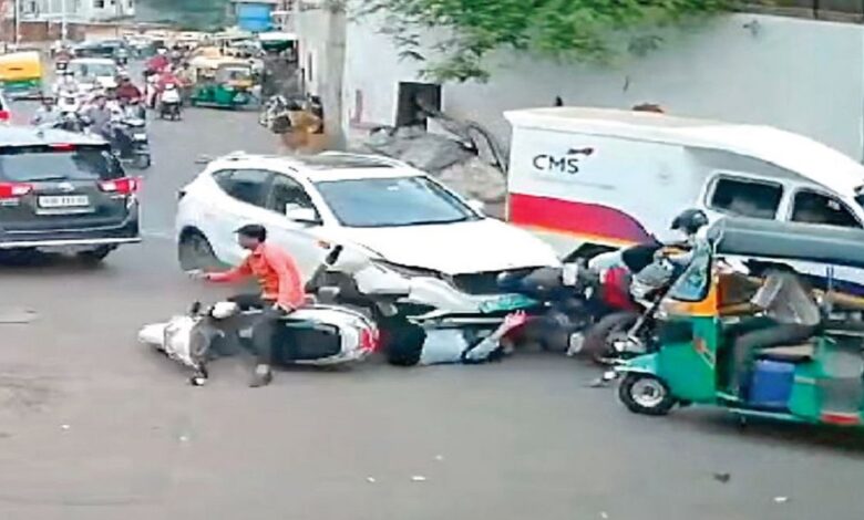 નોંધનીય છે કે, અમદાવાદના જુના વાડજ સર્કલ નજીક દશા માતાના મંદિર નજીક ગઈ કાલ સાંજના ઓવરસ્પીડમાં આવેલી એક કાર દ્વારા ત્રણ ટુવ્હીલર અને એક રિક્ષાને અડફેટે લેવામાં આવી હતી. ત્યારબાદ કાર થોડી આગળ જઈને ઉભી રહી ગઈ હતી. તેમ છતાં ટુવ્હીલર પર સવાર ત્રણ વ્યક્તિ અને રિક્ષાચાલક તથા તેમાં સવાર બે વ્યક્તિ રસ્તા પર પટકાયા હતા. તે દરમિયાન બે વ્યક્તિ પરથી કારનું ટાયર ફરી વળતા તેમને ગંભીર ઈજા પહોંચી હતી.