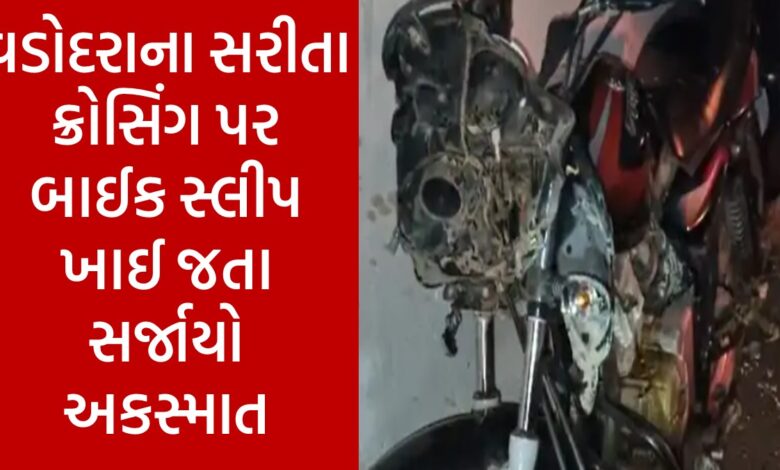 વડોદરાના સરીતા ક્રોસિંગ પર બાઈક સ્લીપ ખાઈ જતા સર્જાયો અકસ્માત, યુવકનો પગ કપાયો