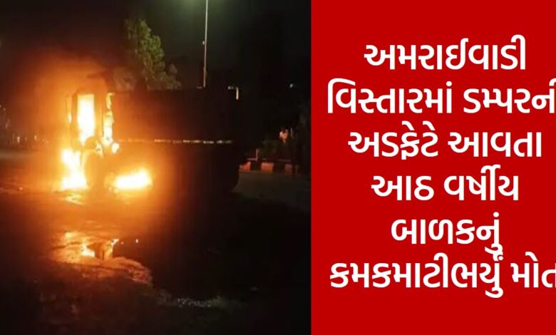 અમદાવાદના અમરાઈવાડી સ્વસ્તિક ચાર રસ્તા પાસે ગઈ કાલ રાત્રીના એટલે શનિવારના સાઈકલ લઈને નીકળેલા આઠ વર્ષના બાળકનું ડમ્પરની અડફેટે આવતા કરુણ મોત નીપજ્યું હોવાની ઘટના સામે આવી છે. આ ઘટનાના લીધે રોષે ભરાયેલા લોકો દ્વારા ડમ્પરને આગ ચાંપી સળગાવી દેવામાં આવ્યું હતું. જ્યારે ડમ્પર ચાલક જીવ બચાવવા માટે ત્યાંથી નાસીને પોલીસ સમક્ષ હાજર થઈ ગયો હતો. પોલીસ દ્વારા લોકોને સમજાવી મામલાને થાળે પાડવામાં આવ્યો હતો.