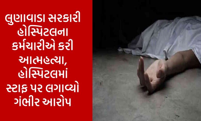 રાજ્યમાં સતત આત્મહત્યાની ઘટનાઓમાં વધારો થઈ રહ્યો છે. તેને લઈને સતત ઘટનાઓ સામે આવતી રહે છે. જ્યારે આજે આવી જ એક બાબત સામે આવી છે. મહીસાગર જિલ્લામાં લુણાવાડામાં આવેલા સરકારી કોટેજ હોસ્પિટલના કર્મચારી દ્વારા આત્મહત્યા કરી લેવામાં આવી હોવાનું સામે આવ્યું છે. આ સિવાય તેમના દ્વારા સુસાઈડ નોટ પણ લખવામાં આવી હતી.
