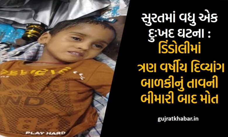 સુરતમાં વધુ એક દુઃખદ ઘટના : ડિંડોલીમાં ત્રણ વર્ષીય દિવ્યાંગ બાળકીનું તાવની બીમારી બાદ મોત