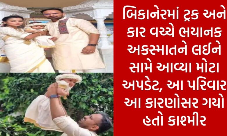 બિકાનેરમાં ટ્રક અને કાર વચ્ચે ભયાનક અકસ્માતને લઈને સામે આવ્યા મોટા અપડેટ, આ પરિવાર આ કારણોસર ગયો હતો કાશ્મીર