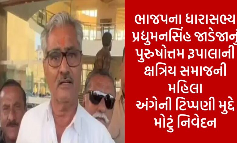 ભાજપના ધારાસભ્ય પ્રદ્યુમનસિંહ જાડેજાનું પુરુષોત્તમ રૂપાલાના નિવેદન અંગે મોટું નિવેદન