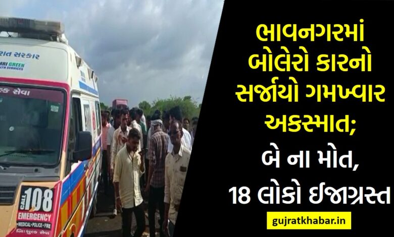 ભાવનગરમાં બોલેરો કારનો સર્જાયો ગમખ્વાર અકસ્માત; બે ના મોત, ૧૮ લોકો ઈજાગ્રસ્ત