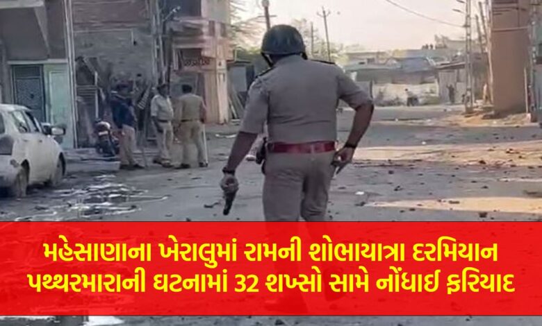 મહેસાણાના ખેરાલુમાં રામની શોભાયાત્રા દરમિયાન પથ્થરમારાની ઘટનામાં 32 શખ્સો સામે નોંધાઈ ફરિયાદ