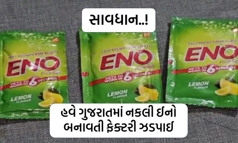 ખેડા જિલ્લો તાજેતરમાં નકલી ખાદ્ય ઉત્પાદનોના કારણે હમણાં ચર્ચામાં આવ્યો છે. નકલી હળદર અને ઘીનો પર્દાફાશ થયા બાદ એક નવો ખુલાસો સામે આવ્યો છે – નકલી ઈનો. ગુજરાત ઈન્ડસ્ટ્રીયલ ડેવલપમેન્ટ કોર્પોરેશન (GIDC) વિસ્તારમાં ENO જે એક લોકપ્રિય એન્ટાસિડ બ્રાન્ડ છે તેનું ઉત્પાદન કરતી નકલી ફેક્ટરી મળી આવી હતી.