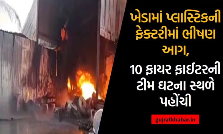 ખેડાથી આગની ઘટના સામે આવી છે. ખેડાના ગોબલજ ગામમાં આવેલ પ્લાસ્ટિકની ફેક્ટરીમાં ભીષણ આગ લાગતા અફરાતફરીનો માહોલ સર્જાયો છે. આ આગ એટલી વિકરાળ છે કે 10 થી વધુ ફાયર ફાઇટર્સની ટીમની ઘટનાસ્થળ પર દોડી આવી છે. આગ દ્વારા વિકરાળ સ્વરૂપ ધારણ કરવામાં આવતા ફાયર વિભાગ દ્વારા મેજર કોલ જાહેર કરાયો છે.
