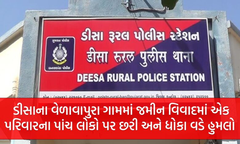 ડીસાના વેળાવાપુરા ગામમાં જમીન વિવાદમાં એક પરિવારના પાંચ લોકો પર છરી અને ધોકા વડે હુમલો, પાંચ ગંભીરરીતે ઈજાગ્રસ્ત