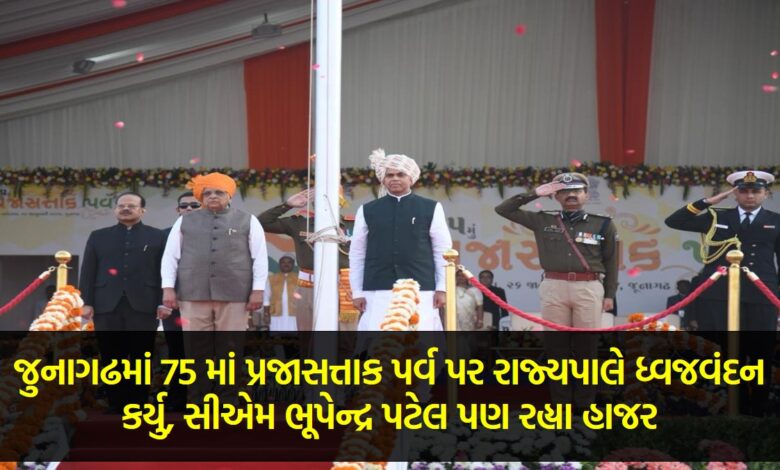 જુનાગઢમાં 75 માં પ્રજાસત્તાક પર્વ પર રાજ્યપાલે ધ્વજવંદન કર્યુ, સીએમ ભૂપેન્દ્ર પટેલ પણ રહ્યા હાજર