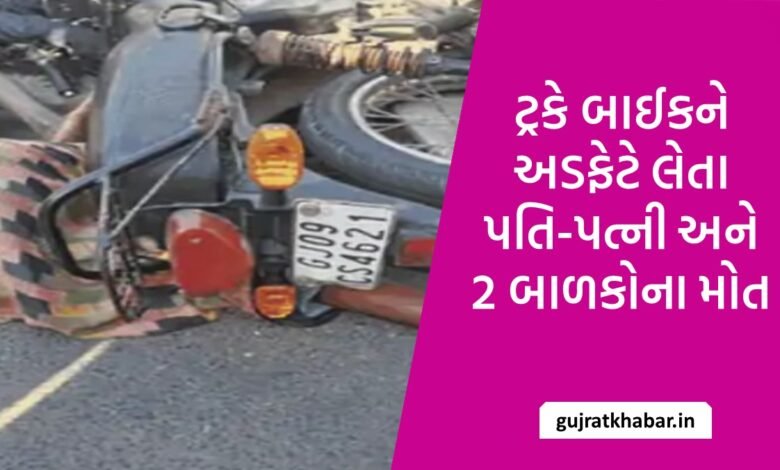 અરવલ્લી: ટ્રકે બાઈકને અડફેટે લેતા પતિ-પત્ની અને 2 બાળકોના મોત