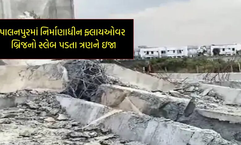 પાલનપુરમાં નિર્માણાધીન ફ્લાયઓવર બ્રિજનો સ્લેબ પડતા ત્રણને ઇજા : રિક્ષા અને ટ્રેક્ટર ચાલક ઘાયલ