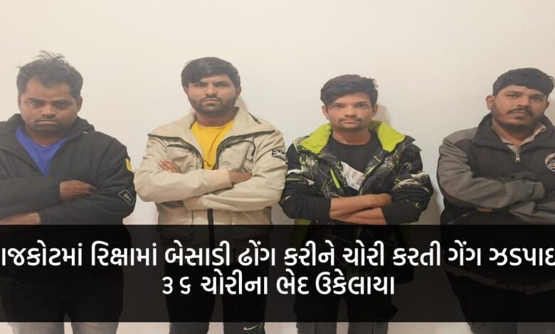 રાજકોટમાં રિક્ષામાં બેસાડી ઢોંગ કરીને ચોરી કરતી ગેંગ ઝડપાઈ, ૩૬ ચોરીના ભેદ ઉકેલાયા