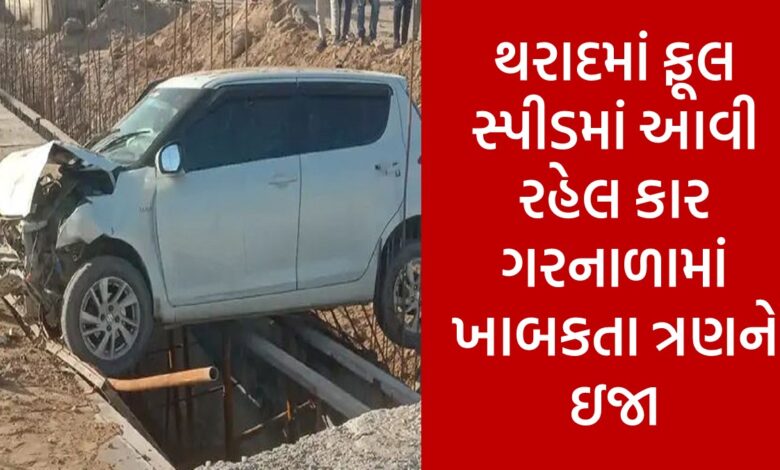 થરાદમાં ફૂલ સ્પીડમાં આવી રહેલ કાર ગરનાળામાં ખાબકતા ત્રણને ઇજા