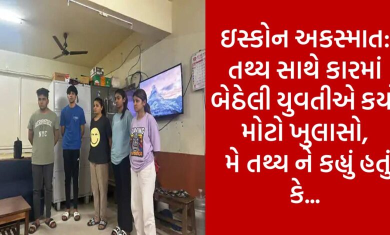 ઈસ્કોન ઓવરબ્રિજ પર થયેલા અકસ્માતને લઈને મોટા સમાચાર સામે આવ્યા છે. ઇસ્કોન બ્રિજ પર અકસ્માત સર્જનાર તથ્ય પટેલ કાર ચલાવી રહ્યો હતો તે સમયે તેના અન્ય મિત્રો પણ રહેલા હતા. જેમાં ત્રણ યુવતી પણ રહેલી હતી. રાત્રીના શું બન્યું તેને લઈને પોલીસ દ્વારા તમામની પૂછપરછ કરવામાં આવી રહી છે. એવામાં એક યુવતી દ્વારા તથ્ય વિશે જણાવવામાં આવ્યું હતું કે, મેં તેને કાર ધીમી ચલાવવા માટેનું કહ્યું હતું. પરંતુ તે માન્યો નહોતો અને કારની સ્પીડ વધારતો જ રહ્યો હતો. કારની સ્પીડ 100 થી વધુ થઈ ગઈ હતી અને ત્યાર બાદ કારનો અકસ્માત સર્જાયો હતો. અમને કશું પણ ખબર પડી નહીં અને આજુબાજુમાં લોકો ભેગ થઈ ગયા હતા. ત્યાર બાદ એક વ્યક્તિ અમને ત્યાંથી લઈને ચાલ્યો ગયો હતો.
