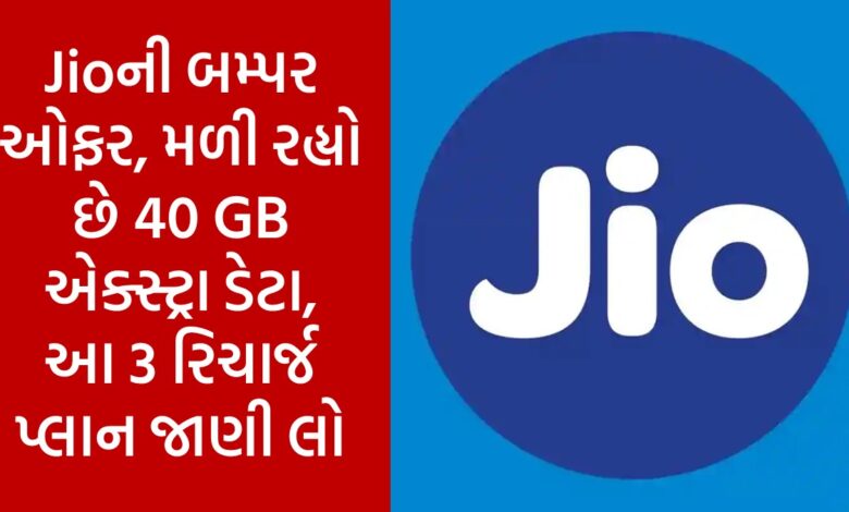 Jioની બમ્પર ઓફર, મળી રહ્યો છે 40 GB એક્સ્ટ્રા ડેટા, આ 3 રિચાર્જ પ્લાન જાણી લો