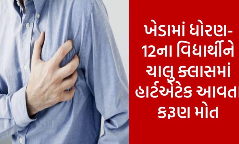 પ્રાપ્ત માહિતી મુજબ, ખેડા જિલ્લાના સેવાલિયા તાલુકાના થર્મલની શાળામાં ચાલુ ક્લાસમાં ધોરણ 12 ના વિદ્યાર્થીને હાર્ટએટેક આવતા કરૂણ મોત નીપજ્યું હોવાનું સામે આવ્યું છે. આ વિદ્યાર્થીને ચાલુ ક્લાસમાં હાર્ટએટેક આવ્યો અને તે અચાનક ઢળી પડ્યો હતો. ત્યાર બાદ તેને સારવાર માટે નજીકની હોસ્પિટલમાં લઇ જવામાં આવ્યો હતો. ત્યાં રહેલા તબીબો દ્વારા વિદ્યાર્થીને મૃત જાહેર કરવામાં આવ્યો હતો.