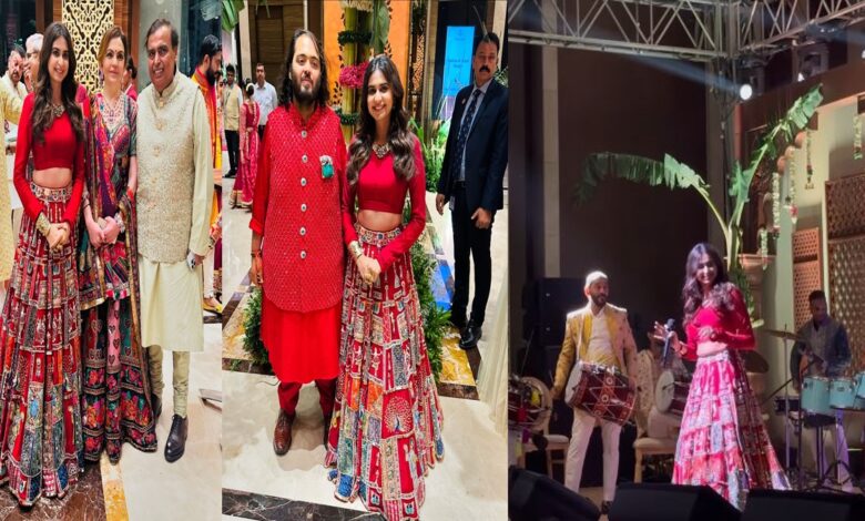 તેની સાથે જણાવી દઈએ કે, મામેરુ ફંક્શન બાદ જ ગરબા નાઈટ નું આયોજન કરવામાં આવ્યું હતું. આ ગરબાના વીડિયો પણ સામે આવ્યા છે. જ્યારે ગુજરાતી કલાકાર કિંજલ દવે દ્વારા પોતાના ઇન્સ્ટાગ્રામ એકાઉન્ટ પર અંબાણી પરિવાર સાથે ની તસ્વીરો સાથે ગરબાનો વિડીયો પોસ્ટ કરવામાં આવ્યો છે. જેમાં કિંજલ દવેના સૂરમાં અંબાણી પરિવાર ગરબે ઝૂમતા જોવા મળ્યા છે.