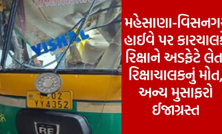 મહેસાણા-વિસનગર હાઈવે પર કારચાલકે રિક્ષાને અડફેટે લેતા રિક્ષાચાલકનું મોત, અન્ય મુસાફરો ઈજાગ્રસ્ત