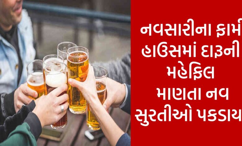 નવસારીના ફાર્મ હાઉસમાં દારૂની મહેફિલ માણતા નવ સુરતીઓ પકડાયા