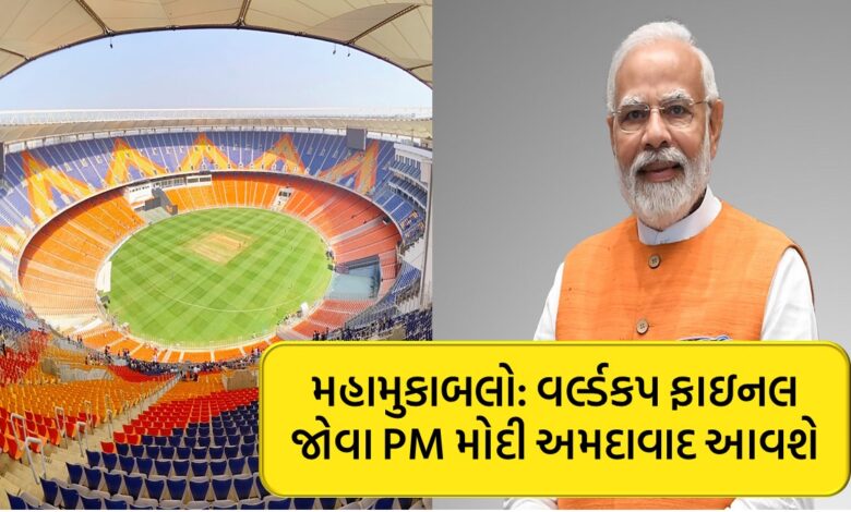વર્લ્ડ કપની ફાઇનલ મેચ 19 નવેમ્બરના રોજ અમદાવાદના નરેન્દ્ર મોદી સ્ટેડિયમમાં ભારત અને ઓસ્ટ્રેલિયા વચ્ચે રમાવાની છે ત્યારે આ મેચ જોવા માટે વડાપ્રધાન નરેન્દ્ર મોદી અમદાવાદ આવશે તેવા સંકેત મળી રહ્યા છે. ગૃહમંત્રી અમિત શાહ પણ મેચ જોવા માટે હાજર રહેશે.