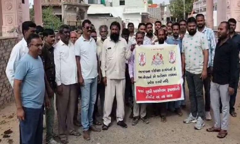 પુરુષોત્તમ રૂપાલાના વિરોધમાં મહેસાણાના કટોસણ ગામમાં ભાજપના કાર્યકરો માટે પ્રતિબંધના લાગ્યા બેનર
