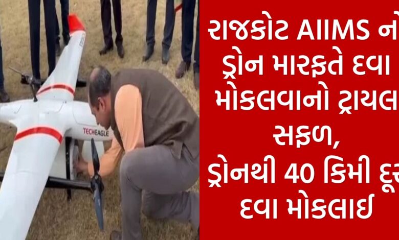 રાજકોટ AIIMS નો ડ્રોન મારફતે દવા મોકલવાનો ટ્રાયલ સફળ, ડ્રોનથી 40 કિમી દૂર દવા મોકલાઈ