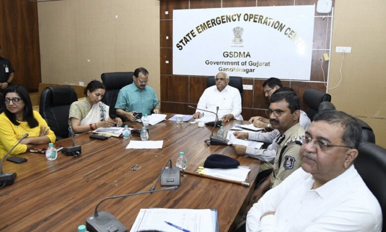 ગાંધીનગર સ્ટેટ ઈમર્જન્સી ઓપરેશન સેન્ટર ખાતે ઉચ્ચસ્તરીય બેઠક યોજીને ગુજરાતમાં ભારે વરસાદથી અસરગ્રસ્ત જિલ્લાઓના કલેક્ટર, તેમજ મ્યુનિસિપલ કમિશ્નરો તથા જિલ્લા અધિકારીઓ સાથે વીડિયો કોન્ફરન્સ દ્વારા વરસાદની સ્થિતિ તેમજ રાહત-બચાવ કામગીરીની સમીક્ષા કરી.