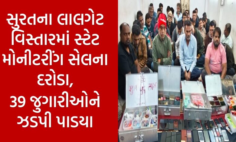 સુરતના લાલગેટ વિસ્તારમાં સ્ટેટ મોનીટરીંગ સેલના દરોડા, 39 જુગારીઓને ઝડપી પાડયા