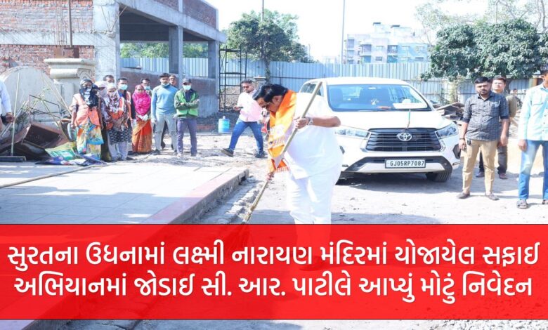 સુરત : ઉધનામાં લક્ષ્મી નારાયણ મંદિરમાં યોજાયેલ સફાઈ અભિયાનમાં સી. આર. પાટીલ થયા સામેલ