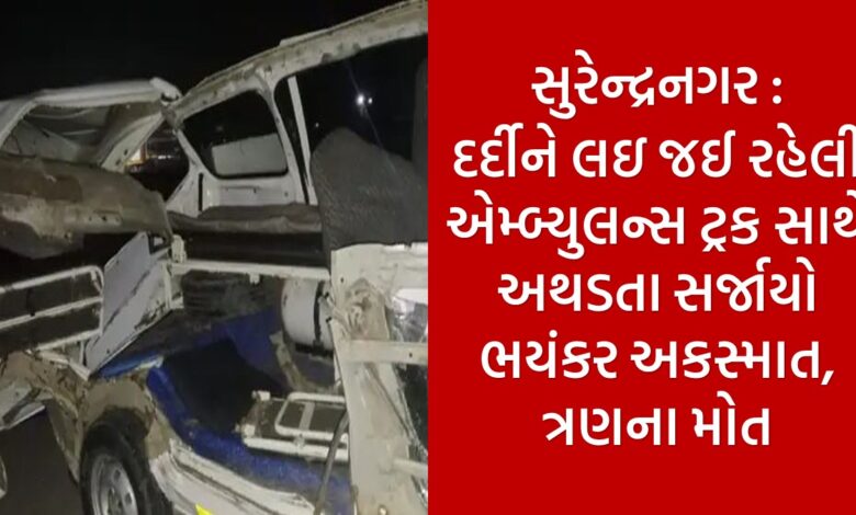 સુરેન્દ્રનગર : દર્દીને લઇ જઈ રહેલી એમ્બ્યુલન્સ ટ્રક સાથે અથડતા સર્જાયો ભયંકર અકસ્માત, ત્રણના મોત