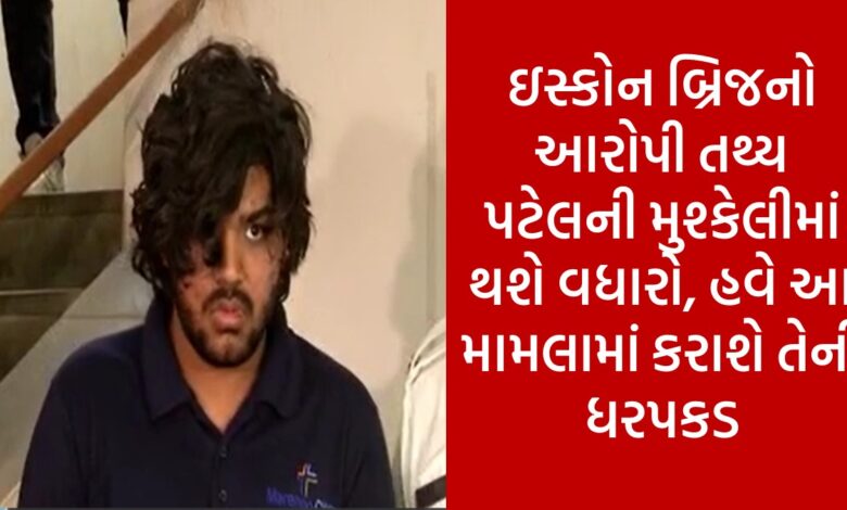 અમદાવાદના ઇસ્કોન બ્રિજ પર અકસ્માત સર્જીને નવ લોકોના જીવ લેનાર તથ્ય પટેલની મુશ્કેલીઓમાં હજુ પણ વધારો થવાનો છે. કેમકે તેને લઈને કંઇક એવા જ સમાચાર સામે આવ્યા છે. જાણકારી મુજબ, તથ્ય પટેલની હવે પોલીસ સિંધુભવન રોડ પર અકસ્માત કેસમાં ધરપકડ કરવામાં આવશે. પોલીસ દ્વારા સોમવારના તથ્ય પટેલની આ કેસમાં ધરપકડ કરવામાં આવશે. સાબરમતી જેલમાંથી તથ્ય પટેલની કસ્ટડી મેળવીને પોલીસ દ્વારા આ મામલામાં પૂછપરછ કરાશે. મહત્વની વાત એ છે કે, ત્રણ જુલાઈની રાત્રીના તથ્ય પટેલ દ્વારા કારને કાફેમાં ઘુસાડી દેવામાં આવી હતી. જેનો ગુનો એમ ડિવિઝન પોલીસ સ્ટેશનમાં દાખલ કરવામાં આવ્યો છે.