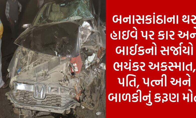 બનાસકાંઠાના થરા હાઇવે પર કાર અને બાઈકનો સર્જાયો ભયંકર અકસ્માત, પતિ, પત્ની અને બાળકીનું કરૂણ મોત