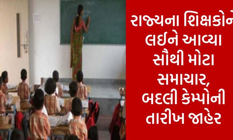રાજ્યના શિક્ષકોને લઈને આવ્યા સૌથી મોટા સમાચાર, બદલી કેમ્પોની તારીખ જાહેર