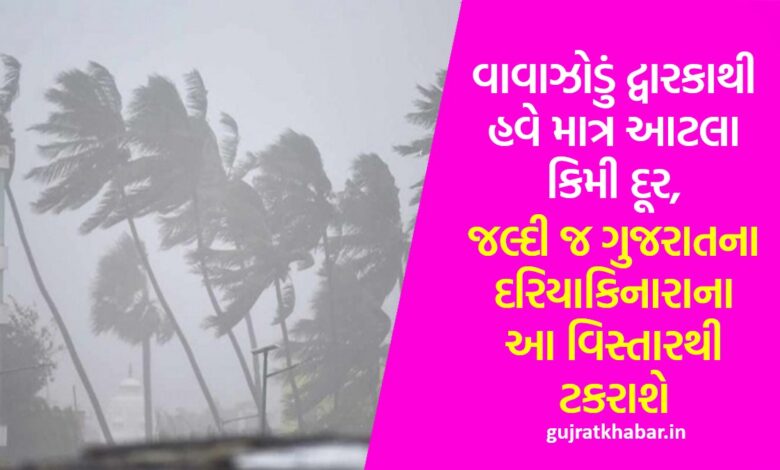 વાવાઝોડું દ્વારકાથી હવે માત્ર આટલા કિમી દૂર, જલ્દી જ ગુજરાતના દરિયાકિનારાના આ વિસ્તારથી ટકરાશેપ્રાપ્ત માહિતી મુજબ, કચ્છના જખૌ અને નારાયણ સરોવરની આજુબાજુ ટકરાઈ તેવી શક્યતા રહેલી છે. જ્યારે 15 જૂનના પાકિસ્તાનના કરાંચી અને જખૌ વચ્ચે ટકરાવવાની શક્યતા રહેલી છે. 14 જૂનના બિપરજોય દ્રારકાના દરિયામાં સ્થિર જોવા મળશે અને દ્વારકાથી 300 કિમી દૂર દરિયામાં વાવાઝોડું થોડા સમય માટે સ્થિર રહેશે. મંગળવાર સાંજના દ્વારકાથી 300 કિમી દૂર જમણી તરફ વાવાઝોડું કચ્છ તરફ ચાલ્યું જશે અને 14 જૂનથી વાવાઝોડાની ગતિ ઓછી થવાની શક્યતા રહેલી છે. મંગળવારના વાવાઝોડની ગતિ વધતા બિપોરજોય વાવાઝોડાની ગતિ 140 કિમી પ્રતિ કલાક સુધી પહોંચે તેવી શક્યતા રહેલી છે. બિપરજોય કચ્છમાં જમીન તરફ આવશે ત્યારે ગતિમાં ઘટાડો થવાની શક્યતા રહેલી છે. કચ્છના જખૌમાં 120 કિમી પ્રતિ કલાકની ઝડપે પવન ફૂંકાઈ તેવી શક્યતા રહેલી છે. બિપરજોયની રાજસ્થાનના જોધપુર સુધી અસર જોવા મળશે.