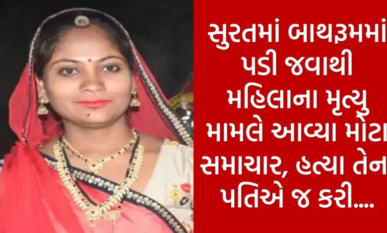 સુરતમાં બાથરૂમમાં પડી જવાથી મહિલાના મૃત્યુ મામલે આવ્યા મોટા સમાચાર, હત્યા તેના પતિએ જ કરી….