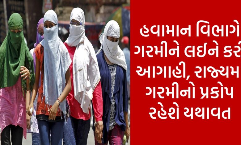 ગુજરાતમાં ઉનાળાની શરૂઆત થઈ ગઈ છે અને લોકોને આકરી ગરમીનો અહેસાસ પણ થઈ રહ્યો છે. જ્યારે કમોસમી વરસાદની પણ શક્યતા રહેલી નથી. તેમ છતાં અરબી સમુદ્ર થી આવતા ભેજવાળા પવનો ના લીધે રાજ્યમાં બફારો વધી ગયો છે. વાદળછાયા વાતાવરણ અને બફારા ની સાથે છેલ્લા થોડા દિવસથી રાજ્યમાં ગરમીનો પારો વધ્યો છે. એવામાં હવામાન વિભાગ દ્વારા ગરમીને લઈને મોટી આગાહી કરવામાં આવી છે.