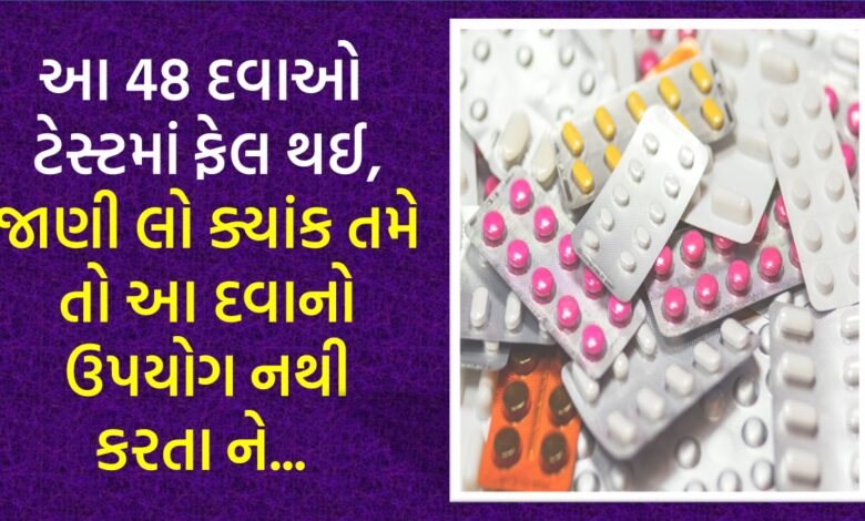 સેન્ટ્રલ ડ્રગ્સ સ્ટાન્ડર્ડ કંટ્રોલ ઓર્ગેનાઈઝેશન (CDSCO)ના તપાસ રિપોર્ટમાં મોટો ખુલાસો થયો છે. રિપોર્ટમાં કહેવામાં આવ્યું છે કે દેશમાં 48 દવાઓના સેમ્પલ સ્ટાન્ડર્ડ ટેસ્ટમાં ફેલ થયા છે. આ દવાઓમાં હૃદયરોગમાં વપરાતી દવા પણ છે. મળતી માહિતી મુજબ, ગયા મહિને દવાઓના કુલ 1497 નમૂનાઓનું પરીક્ષણ કરવામાં આવ્યું હતું, જેમાં 48 દવાઓ તેમના ધોરણને પૂર્ણ કરતી નથી.