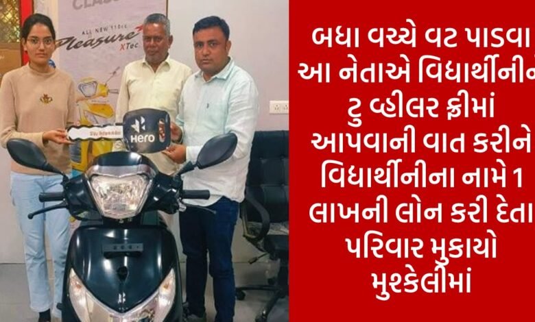 બધા વચ્ચે વટ પાડવા આ નેતાએ વિદ્યાર્થીનીને ટુ વ્હીલર ફ્રીમાં આપવાની વાત કરીને વિદ્યાર્થીનીના નામે 1 લાખની લોન કરી દેતા પરિવાર મુકાયો મુશ્કેલીમાં