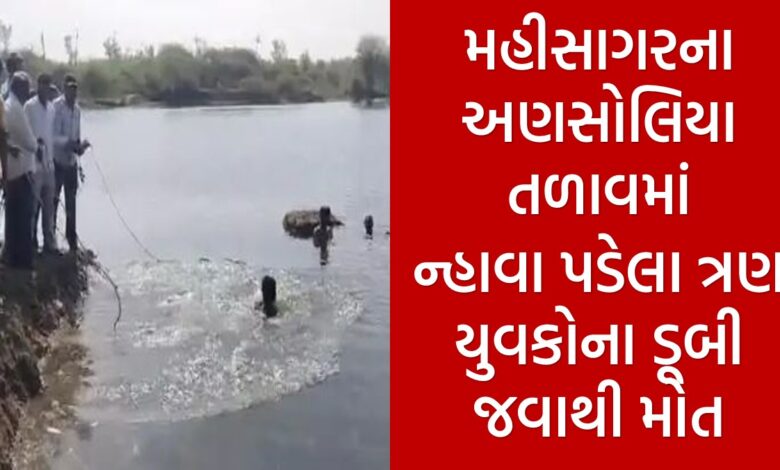 મહીસાગર જિલ્લાના વીરપુરથી એક દુઃખદ મામલો સામે આવ્યો છે. મહીસાગર જિલ્લાના વીરપુરમાં આવેલા અનસોલિયા તળાવમાં ન્હાવા પડવું ત્રણ યુવાનો ભારે પડ્યું છે. આ ન્હાવા પડેલા ત્રણ યુવાનો ડૂબી જવાના લીધે મૃત્યુ નીપજ્યું હોવાના સમાચાર સામે આવ્યા છે. તેના લીધે સમગ્ર ગામમાં ગમગીન માહોલ છવાઈ ગયો હતો.